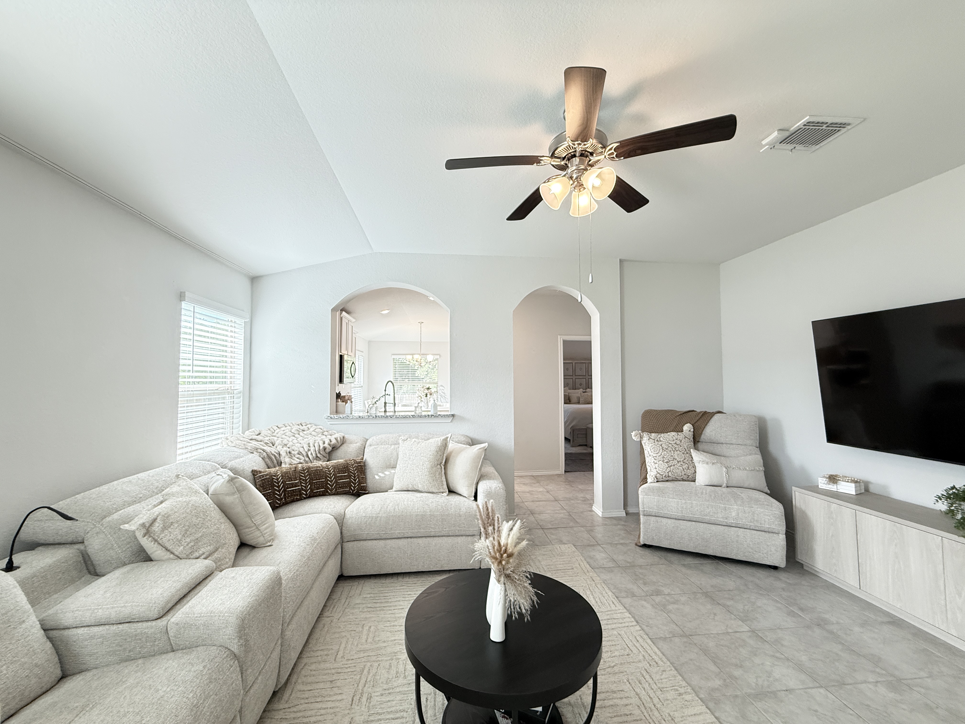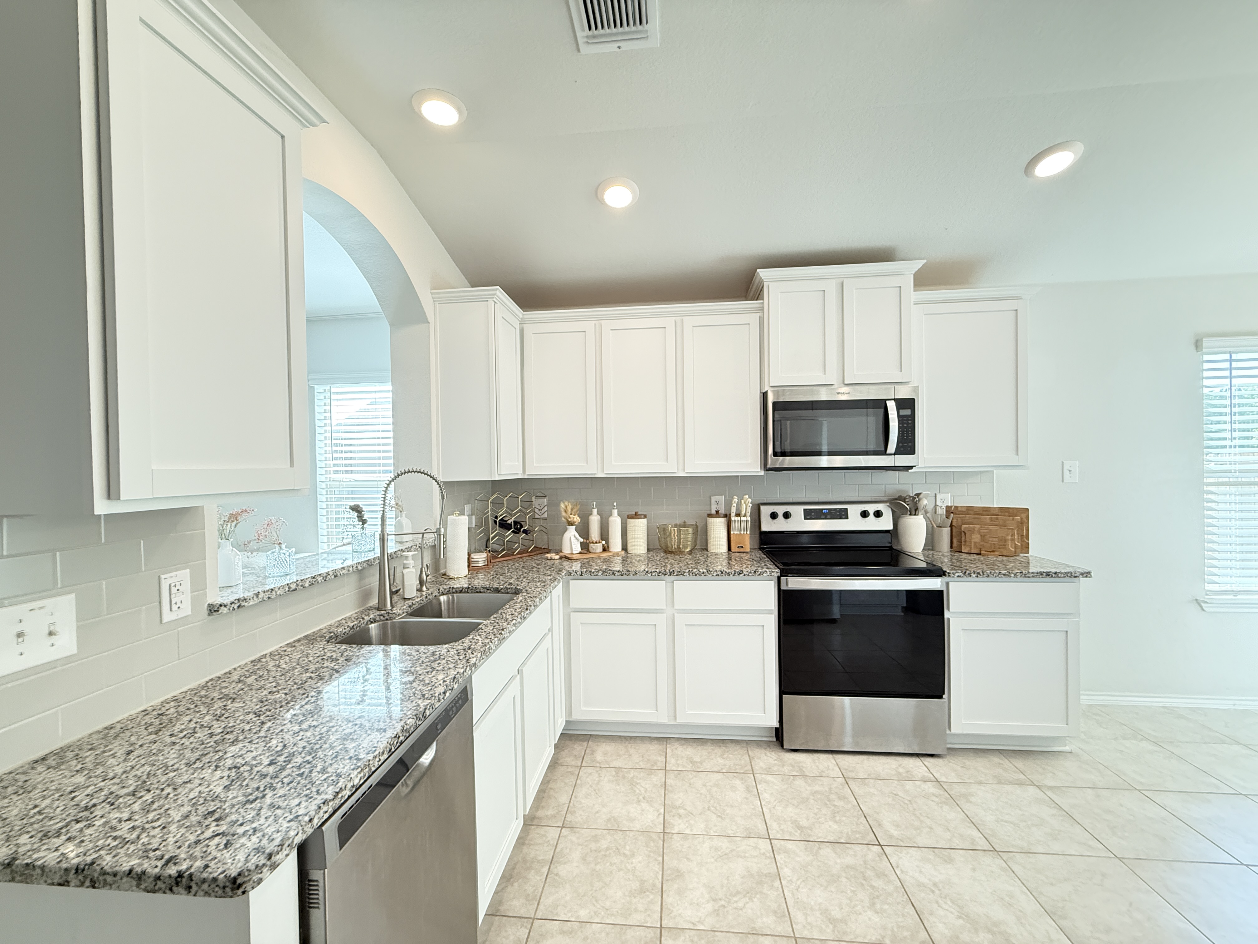 A Rare Discovery!!Unearth many offers before you find one comparable to this D.R. Horton built home nestled in sought-after Creekside Hills. This model-home look-alike in perfect condition awaits a new owner. The well-designed floorplan boasts carefully curated spaces and fun and functional features while presenting an open layout that invites family interaction. Upon entry the tiled foyer opens to the generously scaled living room where elegant elliptical arches transition to the kitchen and dining area without confinement. The kitchen is a culinary delight, equipped with crisp, white cabinets, granite-topped counters, and stainless-steel appliances. A twinset of windows pump natural light into the dining area and captures a view of the backyard. The atrium door leads to the covered patio-an inviting family hang-out spot- and the oversized backyard that offers ample space for little ones and fur babies to roam. You will appreciate the privacy: no roof tops behind your back fence, just an eye-pleasing view of lush greenery and treetops! The primary suite is positioned to the rear of the home for welcomed privacy and exudes an ambiance of tranquility. The beautifully appointed primary bath features an extra-large shower, linen closet, and a dual sink vanity. The two minor bedrooms have generous closet space and ceiling fans for added comfort and sharing a full-size bath. The interior utility room pulls double duty as a voluminous pantry. The dual car sized garage is equipped with pull-down attic access stairs. Extra amenities include Faux-wood blinds dressed windows, security system with exterior cameras, and a welcoming wrap-around front porch.